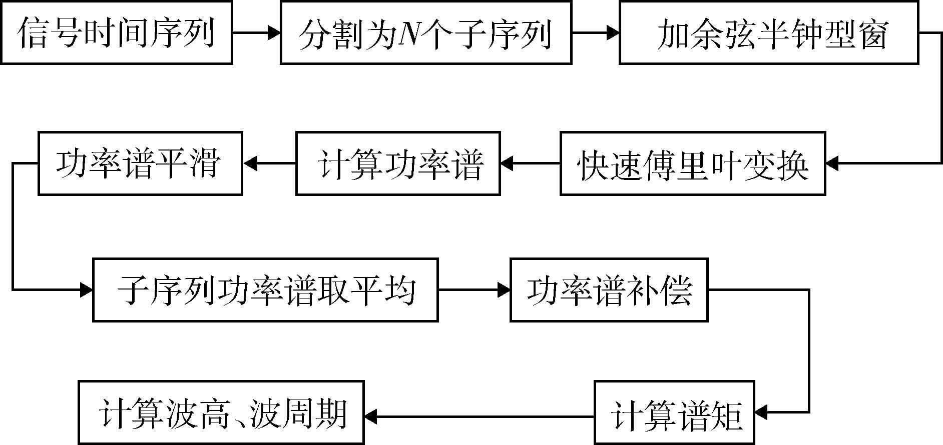 提出了一种改进周期图法的波浪功率谱分析方法,优化了谱估计的计算流程,提升了波高波周期等参数反演的速度。研究了波浪方向估计算法,利用雷达阵列测得的波面三点高度获取水面斜率,通过斜率及水面升沉变化的相互关系来确定波浪方向信息,简化了波浪方向反演的计算方法。与浮标数据对比实验结果表明,波浪参数反演方法与Datawell Mk III波浪浮标的反演方法得到的波浪参数相关性达到98.4%,可以满足实际使用要求。