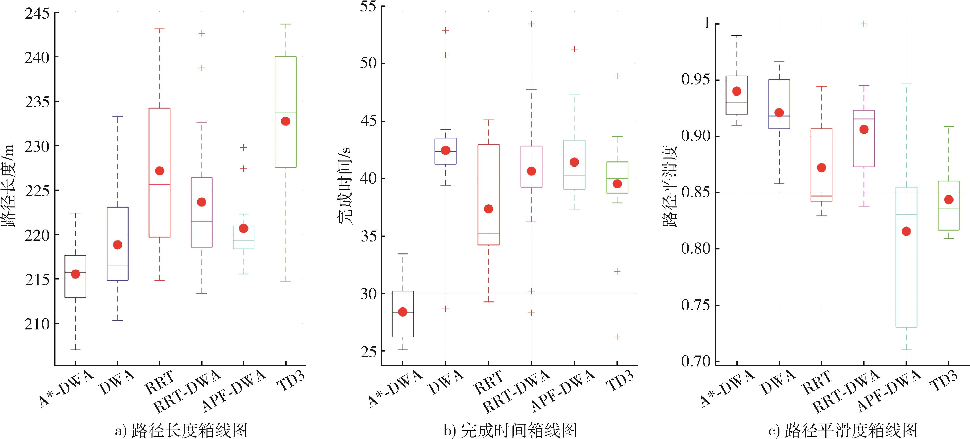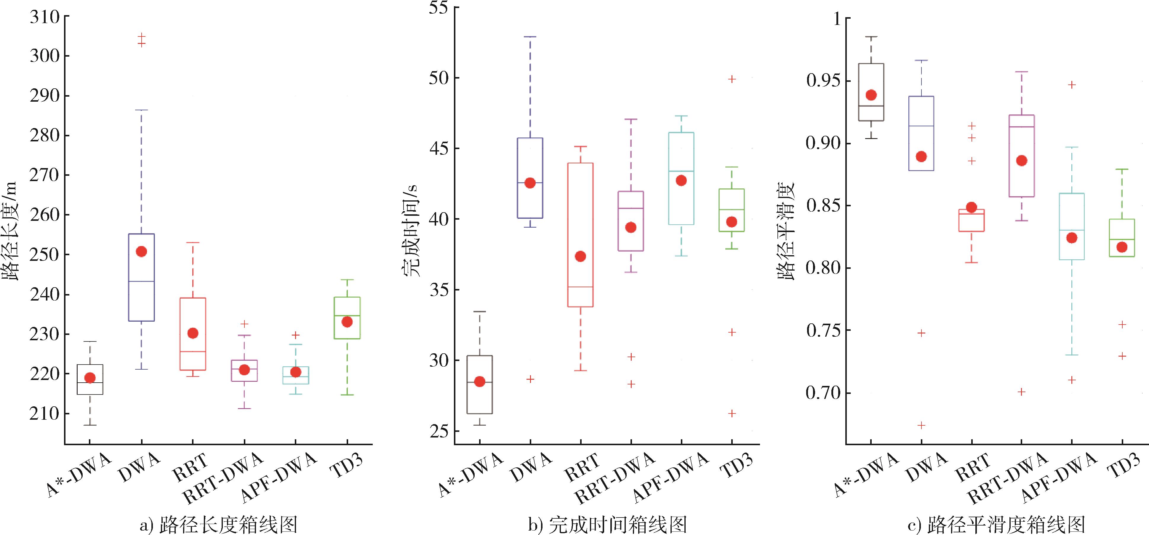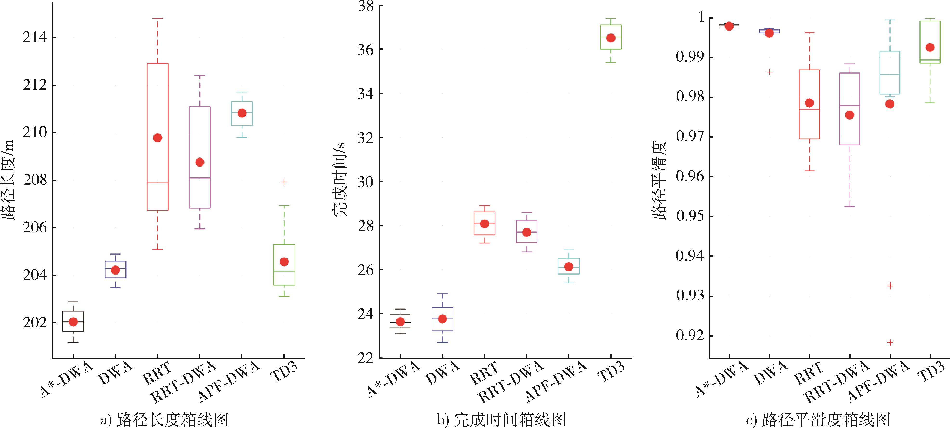 | 算法类型 | 路径长度/m | 完成时间/s | 路径光滑度 | 避障成功率/% |