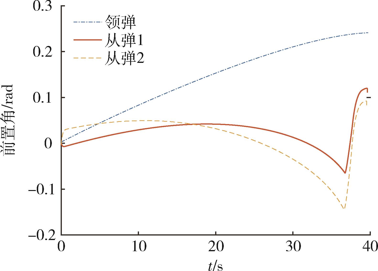 | 弹目 | 脱靶量/ m | 制导时间/ s | 协同时间 误差/ms | 初始时刻剩余飞行时间估计值/s |